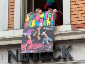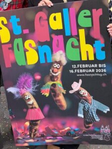 Im und vor dem Fondue-Beizli startete St.Gallen in die Fasnacht 2026. Die beiden Ehren-Föbüs Malcolm XXVII. und Géraldine XLIV. sorgten am Saxophon und gemeinsam mit den Guggenmusikern für die passende musikalische Begleitung. Fasnachts-Präsident Oskar Seeger begrüsste wie gewohnt schwungvoll und weckte Vorfreude. Und selbstverständlich durften zwei besondere Highlights nicht fehlen: Erstens die Präsentation des neuen Fasnachtsplakats. Einmal mehr gingen dieses aus einem Wettbewerb unter Studierenden der Schule für Gestaltung GBS hervor. Gewonnen hat Alissa Signer aus Aadorf. Und zweitens gab’s vom Schützengarten 111 Liter Freibier. Was will man mehr.