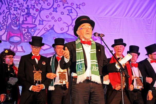 Die wirklichen Sterne am Himmel der Föbü-Nächte jedoch sind die Schnitzelbänkler. Geben wir es zu, auch wenn es schwer fällt: Vater der Sanggaller Schnitzelbänggler ist ein Basler mit dem klingenden Namen Louis de St-Gall. Bald aber war er nicht mehr alleine und der St.Galler Dialekt eroberte mit zahlreichen, in der Zwischenzeit legendären Figuren die Fasnachtsbeizen.