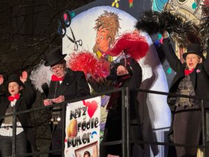 Nun hat es unter den Föbüs der Stadt St.Gallen auch noch ein tapferes Schneiderlein. Die neue Ehren-Födlebürgerin ist Karin Bischoff. Oder, besser, Karin L. Das «L» steht nicht etwa für Lernfahrer oder Lehrling. Ganz im Gegenteil. Karin L. hat immer wieder bewiesen, dass sie alles ist, ausser Anfängerin. In jungen Jahren wurde sie an den Berufsweltmeisterschaften Schneider-Weltmeisterin, später baute sie ihr eigenes Couture-Atelier auf und pflegt mit Sorgfalt und Professionalität das St.Galler Stickerei-Erbe. Darüber hinaus setzt sie sich überall dort ein, wo in St.Gallen ehrenamtliches Engagement gefragt ist. Und dies mit Födle, Herz und Humor. So wie es sich für eine Föbü gehört. Dazu passten auch ihre drei Wünsche, die sie vor dem Verschuss äussern durfte: Erstens wünscht sie sich in der Stadt viele Gewerbetreibende mit spannenden Ausbildungsplätzen, guten Ideen und attraktiven Produkten. Zweitens hofft sie auf einen guten Sommer mit fussballspielenden Frauen und schwingenden Männern und drittens möchte sie, dass Vadian auch im nächsten Jahr verkleidet an der Fasnacht teilnimmt.