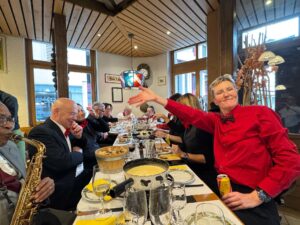 Das römische Zeichen «L» steht für 50. Karin wurde als fünfzigste St.Gallerin, respektive St.Galler mit der Konfetti-Kanone von Max Oertli in den Föbü-Himmer verschossen. Angefangen hat alles anfangs der siebziger Jahre. Kurt II. erzählte die Geschichte wie folgt: «Im Jahre des Herrn 1972 n.Chr. trafen sich eines Abends eine Handvoll Sanggaller Guggenmusiker zu einer oder mehreren Stangen „Schützengarten“, um über das Födlebürgertum z’Sanggale im Allgemeinen und dem bei der Presse im Besonderen zu lamentieren. „Me mösst halt emol ein vo däne Födlebürger verschüsse“ meinte einer zur vorgerückten Stunde, „dänn chämed mer scho i de Zitig und Sanggale het erscht no en Födlebürger wäniger…“. Kurz nach der Polizeistunde wurde der entsprechende Beschluss gefasst! Seither sucht man jedes Jahr nach einer Persönlichkeit „mit Födle, Herz und Humor“ und bläst ihr am Fasnachtssamstag mit der mächtigen Konfettikanone die letzten Reste von Födlebürgertum aus seinem Geist, auf dass er lebenslang den Titel „Ehren-Födlebürger der Stadt St.Gallen“ tragen darf.» Eine Ehre, die nun Karin L. gehört. Sie hat es verdient.